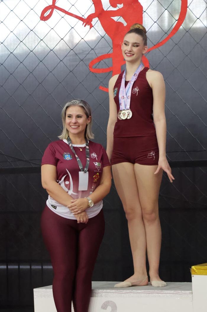 Além disso, Manuella conquistou o título de campeã por aparelho no individual de maças juvenil, e assegurou o 3º lugar na prova por aparelho de bola, reforçando sua versatilidade e excelência nas apresentações.