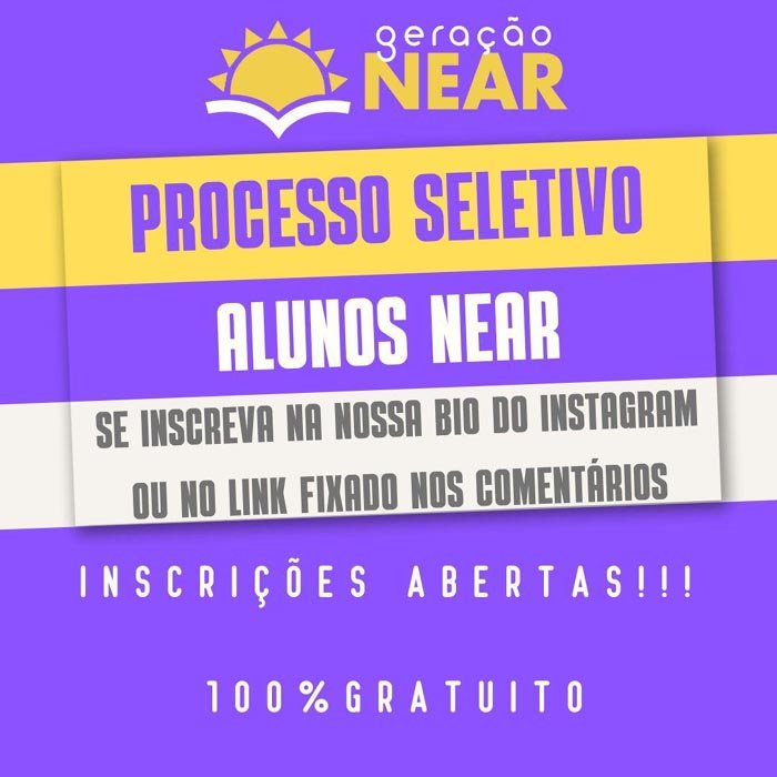 As inscrições já estão abertas. Para mais informações e acesso ao formulário de inscrição, os interessados podem entrar em contato pelo e-mail, acompanhar as atualizações pelo Instagram do projeto (@geracao.near) ou acessar diretamente o link de inscrição: https://forms.gle/DvFTxtjCQ5bUTYvk9