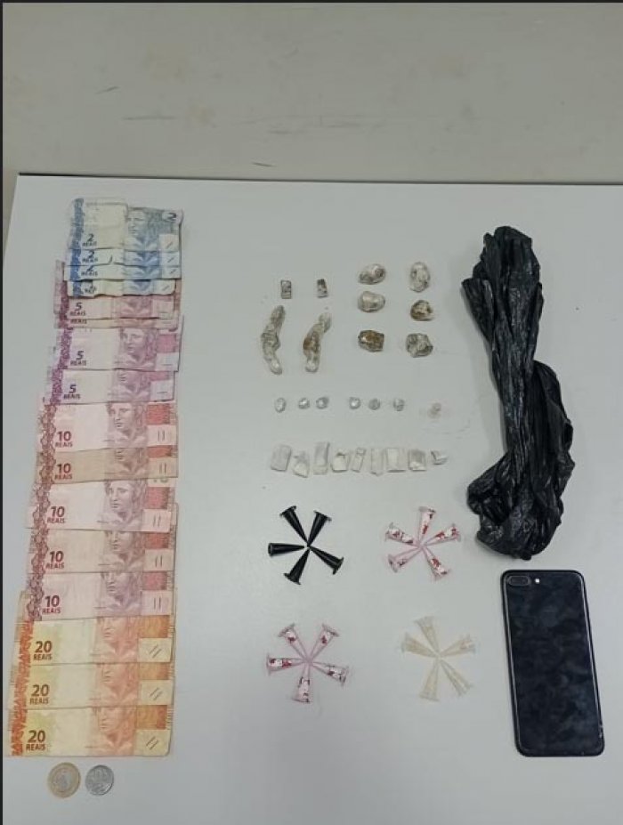 Antes de ser abordado, o rapaz tentou esconder uma sacola preta em um cano de escoamento de água. Na revista pessoal, os agentes encontraram um iPhone, dois microtubos de crack e R$ 139,50 em dinheiro. Ao verificar o local onde a sacola havia sido dispensada, a equipe localizou o restante dos entorpecentes: 17 porções de crack, 10 de maconha, 09 de haxixe e 10 de cocaína.