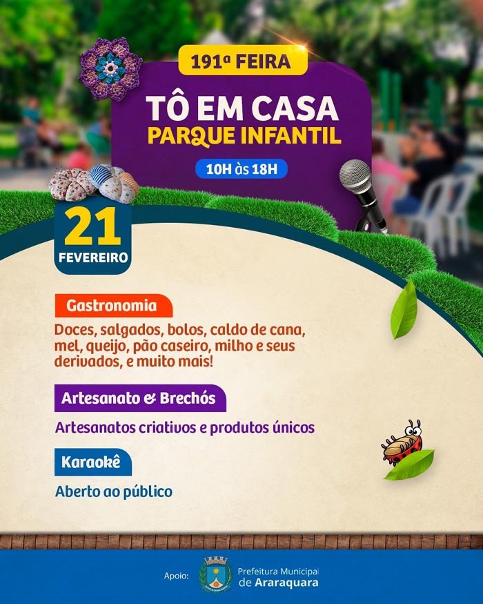 Realizada pelo Coletivo Tô em Casa, com apoio da Prefeitura de Araraquara por meio da Secretaria Municipal de Desenvolvimento Econômico, via Subsecretaria do Trabalho e da Economia Criativa e Solidária, a feira se consolidou como um espaço que valoriza a economia criativa e fortalece o convívio comunitário.