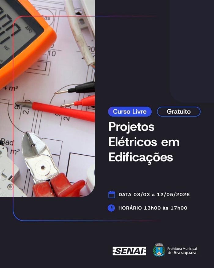 A Prefeitura de Araraquara, em parceria com o Serviço Nacional de Aprendizagem Industrial, está com matrículas abertas para o curso gratuito de Projetos Elétricos em Edificações, com carga horária de 80 horas.