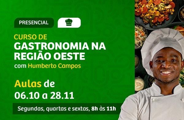Inscrições estão abertas; aulas incluem técnicas e receitas da culinária brasileira e internacional