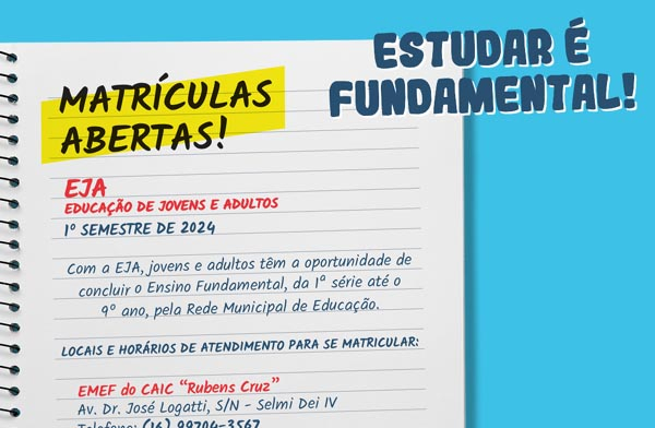 Vagas da rede municipal são para o 1º semestre de 2024 no ensino fundamental