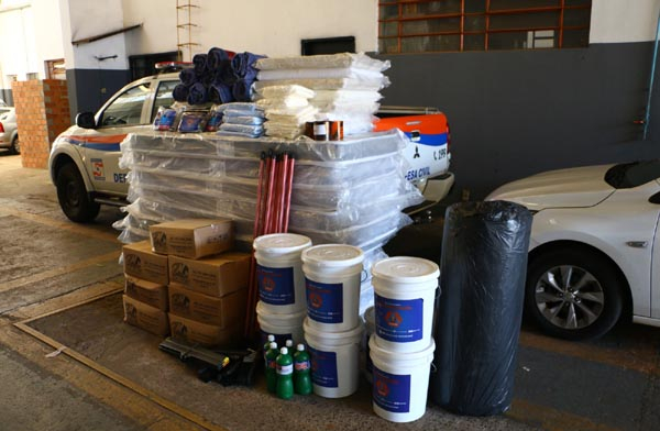 Os kits enviados pelo Governo do Estado incluem colchões, cestas básicas, cobertores, lençóis, fronhas, travesseiros, produtos de higiene pessoal e materiais de limpeza