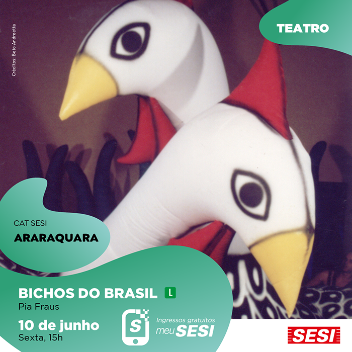 Nesta sexta-feira (10), o Centro de Atividades do Sesi Araraquara convida toda a população, principalmente as crianças, para uma viagem pelo imaginário dos mitos populares brasileiros que irá despertar a conscientização sobre a importância da preservação da nossa fauna, através do espetáculo de teatro “Bichos do Brasil” da Cia. Pia Fraus.
