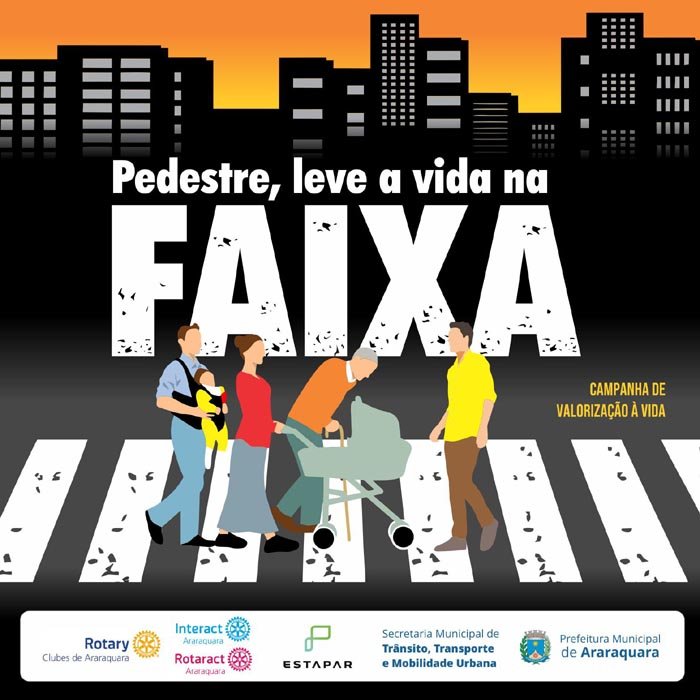 A Prefeitura de Araraquara, por meio da Secretaria Municipal de Trânsito, Transporte e Mobilidade Urbana, lança nesta terça-feira (20) a ação "Leve a vida na faixa - Campanha de valorização à vida", que visa educar a população para a importância da utilização da faixa de pedestre. A campanha envolve faixas, cartazes, entrega de panfletos pelas ruas e divulgação de cards nas redes sociais.