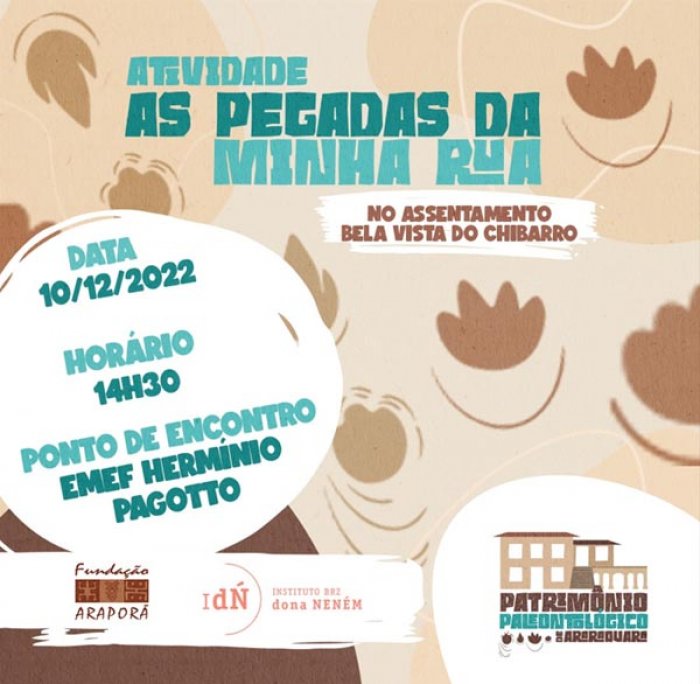 A cidade de Araraquara pode ser considerada um museu a céu aberto, pois suas calçadas possuem icnofósseis, que são pegadas de dinossauros, mamíferos e rastros de invertebrados de uma fauna que viveu nesse território há cerca de 135 milhões de anos atrás. Neste sábado (10) será realizada a oficina “As pegadas da minha rua” no Assentamento Bela Vista do Chibarro, onde os participantes poderão experenciar como trabalham os paleontólogos.