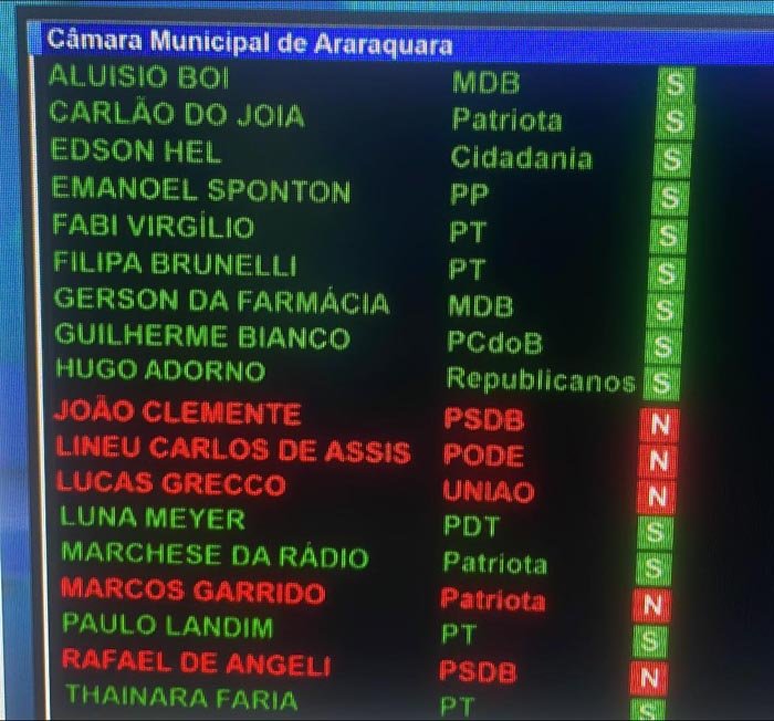 Confira na imagem a baixo quem votou a favor e quem votou contra as contas.