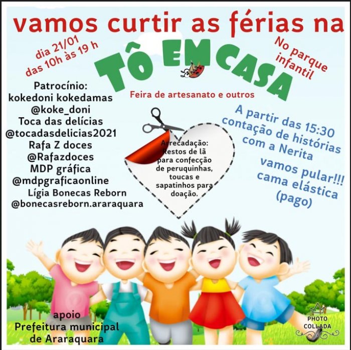 Neste sábado, 21 de janeiro, a Feira Tô em Casa reúne um time de artesãos para agitar o Parque Infantil, no Centro de Araraquara. Das 10h às 19 horas o público poderá apreciar os trabalhos de empreendedores e artesãos da cidade e região, com uma diversidade de produtos que apresenta: decoração, culinária, moda, beleza, brinquedos – entre outros.