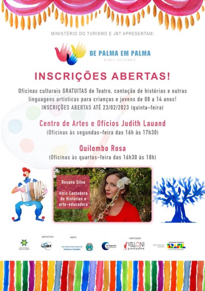 Atividades de Teatro e Contação de Histórias serão realizadas no Quilombo Rosa e CAOF; inscrições abertas até 23 de fevereiro