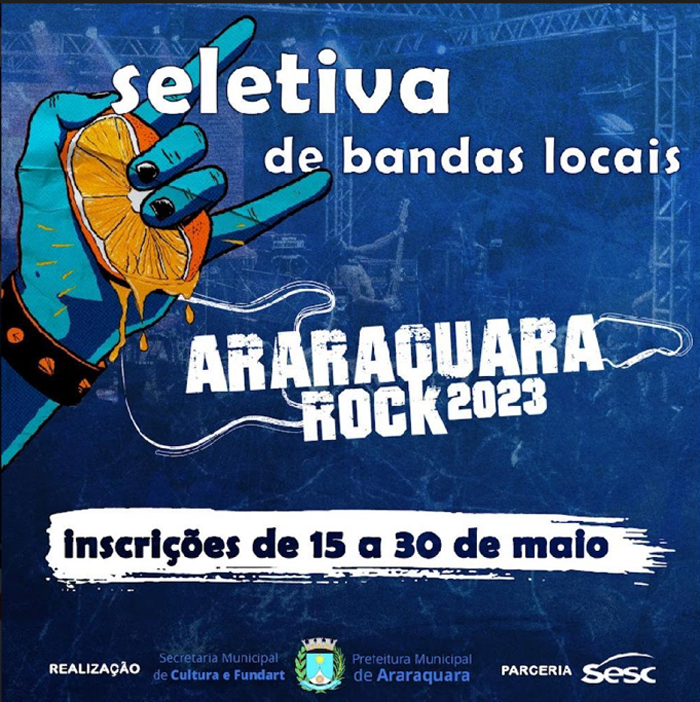 Os preparativos para o Araraquara Rock 2023 já começaram e a organização anunciou as inscrições para a seletiva de bandas de Araraquara. Promovido pela Prefeitura Municipal de Araraquara, por meio da Secretaria Municipal da Cultura e FUNDART - Fundação de Arte e Cultura de Araraquara - em parceria com o SESC Araraquara, o Araraquara Rock, em sua 21ª edição, apresenta shows e atividades complementares que valorizam a cena de Rock e Metal que acontece fora do circuito comercial.