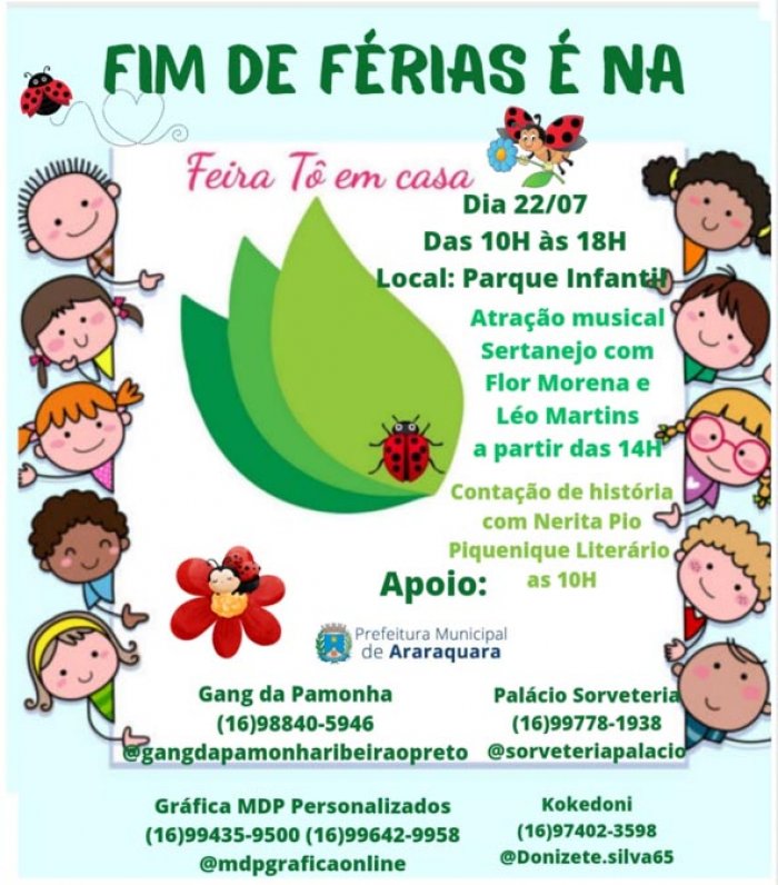Vale destacar que as atividades têm o apoio ou a realização da Prefeitura de Araraquara, por meio da: Secretaria de Trabalho, Desenvolvimento Econômico e Turismo; Coordenadoria de Trabalho e de Economia Criativa e Solidária; Secretaria Municipal da Cultura e Fundart; e Secretaria Municipal do Meio Ambiente e Sustentabilidade.