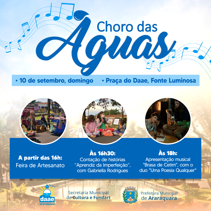 Contação de história “Aprendiz da Imperfeição”, show musical “Brasa de Cetim” e Feira de Artesanato estão no programa, com início às 16 horas
