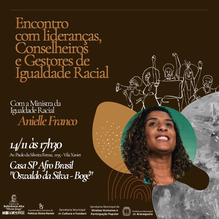 17h30 – Encontro de Lideranças, Conselheiros e Gestores de Igualdade Racial com a Ministra Anielle Franco