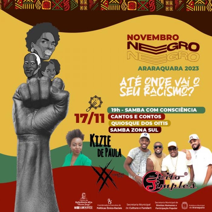 A programação do Novembro Negro em Araraquara, promovida pela Prefeitura através da Coordenadoria de Políticas Étnico-Raciais, terá sequência nesta sexta-feira (17) com três atividades. Com o tema "Até onde vai o seu racismo?", a campanha deste ano tem o objetivo de despertar para reflexão e envolver a população em geral para uma ação prática e efetiva, seja através do impacto visual, do estímulo à conscientização coletiva, mas principalmente para a valorização da identidade e da cultura afro-brasileira.