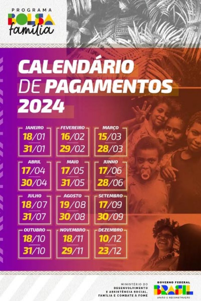 Fonte: https://agenciabrasil.ebc.com.br/geral/noticia/2023-12/governo-divulga-calendario-de-pagamentos-do-bolsa-familia-para-2024#