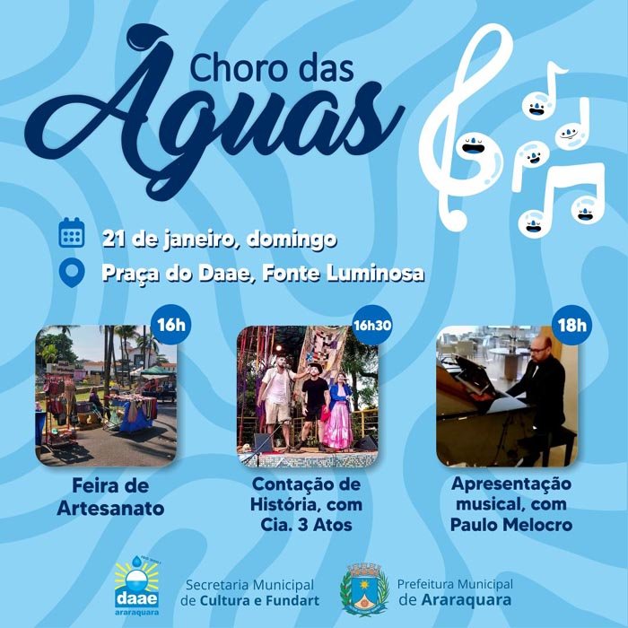 Programação gratuita na Praça do Daae – Fonte Luminosa, em Araraquara, é neste domingo (21), a partir das 16h