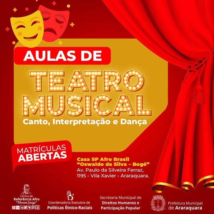 Estão abertas as inscrições para o Curso de Teatro que será realizado gratuitamente na Casa SP Afro Brasil "Oswaldo da Silva - Bogé", em parceria com a Companhia 4i Artes, a primeira companhia independente de teatro musical de Araraquara.