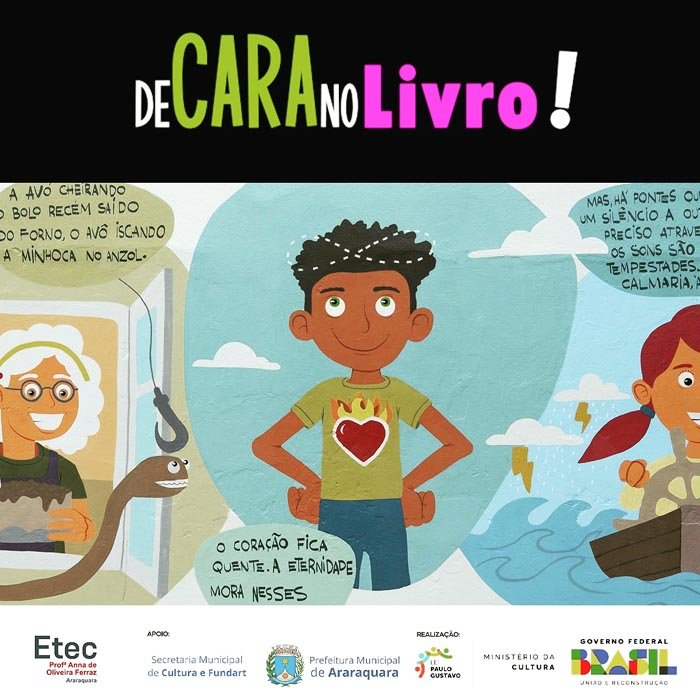 “De cara no livro” é um projeto da Editora Geringonça produzido pela 2P produções, com apoio da Prefeitura Municipal de Araraquara, por meio da Secretaria Municipal de Cultura e FUNDART, e também da ETEC Professora Anna de Oliveira Ferraz.