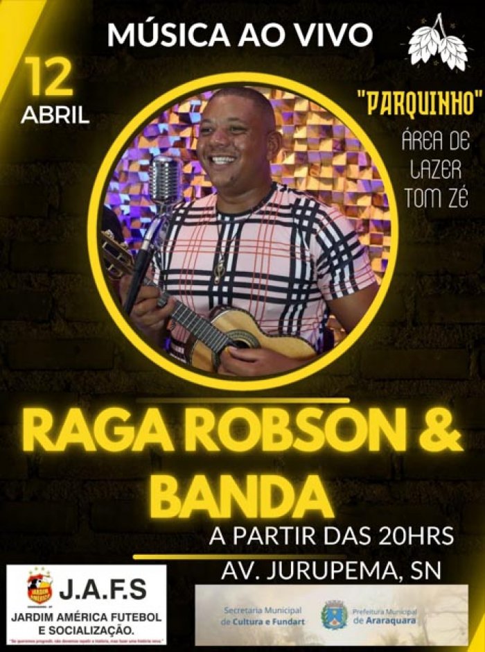 Nesta sexta-feira, 12 de abril, a Área de Lazer Antônio José Paterniani – Tom Zé, no Jardim América, recebe o programa Prefeitura na Praça com apresentação musical de samba com Raga Robson & Banda. O samba gratuito faz parte da programação realizada pela Jafs – a associação de moradores do Jardim América Jardim, “América Futebol e Socialização” – e conta com o apoio da Secretaria Municipal de Cultura e Fundart, com início às 20 horas.