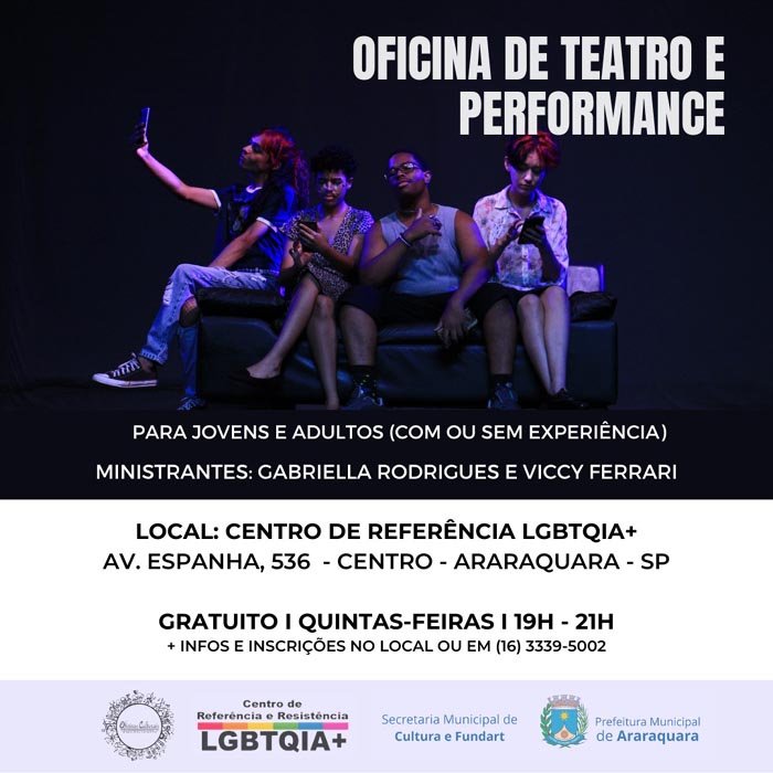 O curso, gratuito, faz parte do programa das Oficinas Culturais Municipais e é promovido pela Assessoria de Políticas LGBTQIA+, que integra a Secretaria de Direitos Humanos e Participação Popular da Prefeitura de Araraquara. A oficina é voltada para jovens e adultos, com ou sem experiência. As aulas serão ministradas pelas professoras de teatro Gabriella Rodrigues e Viccy Ferrari.