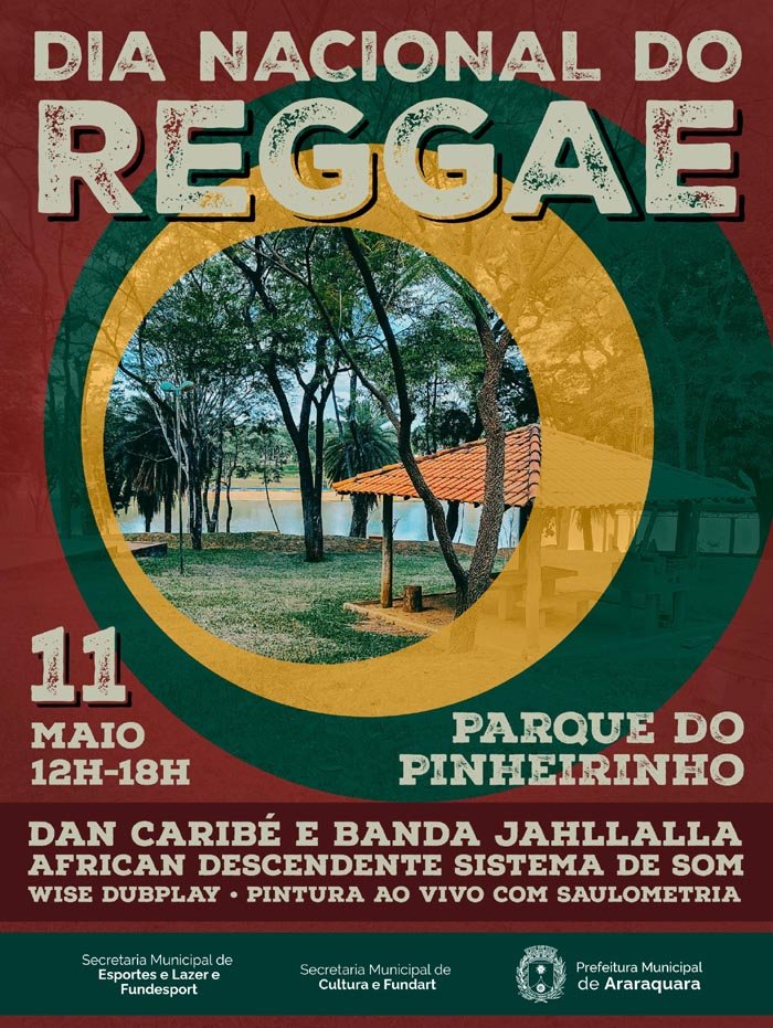 Tem reggae no Parque Pinheirinho neste sábado, 11 de maio, em comemoração ao Dia Nacional do Reggae. A programação gratuita, com shows musicais e arte urbana, tem início às 12 horas, em uma realização da Secretaria Municipal da Cultura e Fundart.