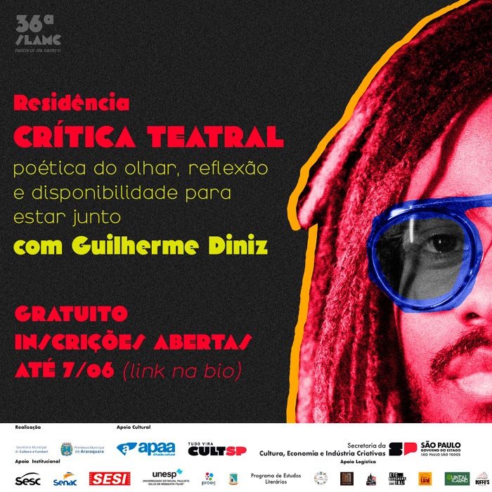 Guilherme Diniz (@ogui.diniz) retorna a SLAMC com esta residência gratuita em Crítica Teatral para exercitar o olhar e a escrita sobre os trabalhos cênicos como um ato político, reflexivo e criativo. Os encontros irão estimular indagações sobre como a crítica pode tecer narrativas, memórias e perspectivas que questionem as cenas, seus discursos e suas relações com o mundo.