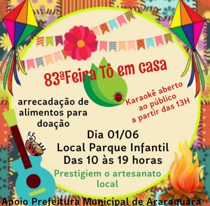Duas feiras de artesanato na programação do final de semana: a Feira Tô em Casa será realizada no sábado (01), no Parque Infantil, e a Feira do Choro das Águas no domingo (02), na Praça do Daae. A programação gratuita é uma realização da Prefeitura de Araraquara.