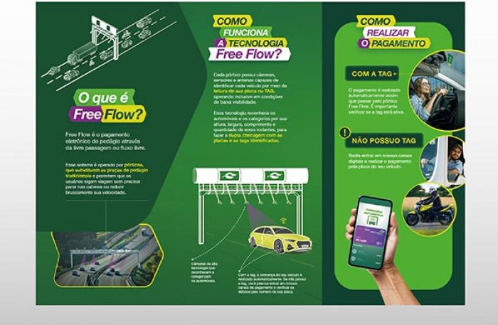 A campanha explica desde o que é Free Flow e como e onde será sua operação, as vantagens do novo sistema (como a economia de tempo, pois não é necessário parar no pedágio) até instruções detalhadas de como pagar a tarifa com a instalação da tecnologia. Os panfletos têm mapas com as localizações dos pedágios onde serão inaugurados os dois pórticos em trechos da SP 333: Itápolis (km 179) e Jaboticabal (km 110).