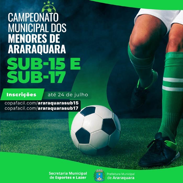 A Prefeitura de Araraquara, por meio da Secretaria Municipal de Esportes e Lazer, abriu as inscrições para o Campeonato Municipal de Menores nas categorias sub-15 e sub-17, que têm por finalidade promover o intercâmbio social e esportivo, além de desenvolver a modalidade na cidade, estimulando a prática esportiva.