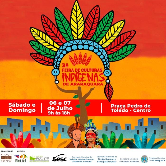 Araraquara recebe nesta sábado e domingo, 06 e 07 de julho, a 3ª Feira de Culturas Indígenas, que tem o objetivo de dar visibilidade à sociodiversidade indígena de forma interativa, mostrando diferentes expressões e produções dos povos participantes. A feira será realizada das 9 às 18 horas, na Praça Pedro de Toledo, com programação gratuita.