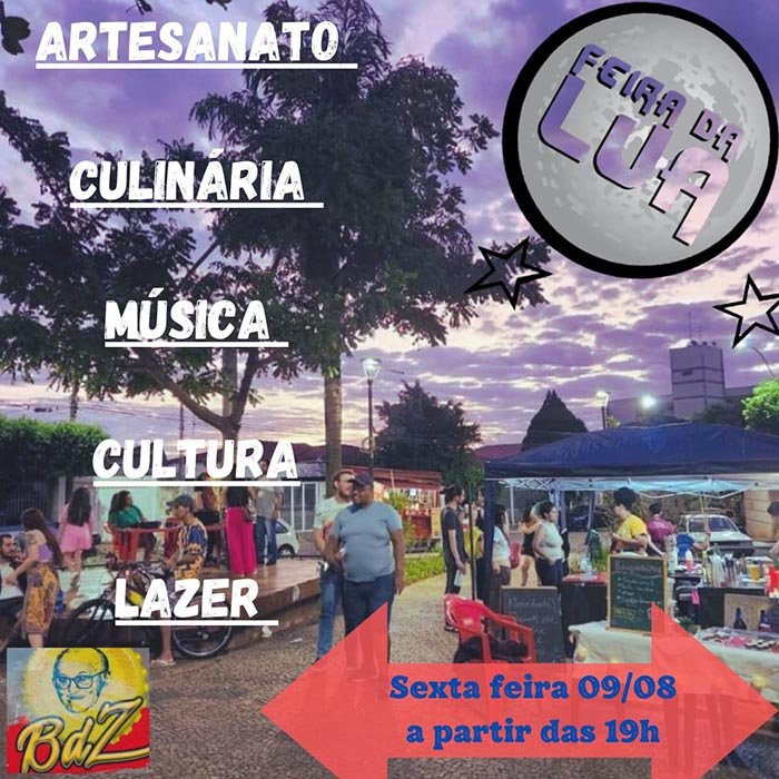 A Feira da Lua, realizada pelo Coletivo Pôr do Sol, apresenta artesanato, culinária e brechó, com expositores de Araraquara e região, das 18h às 22h, na Praça das Bandeiras. A música com discotecagem, para todas as idades, é um dos diferenciais da feira.