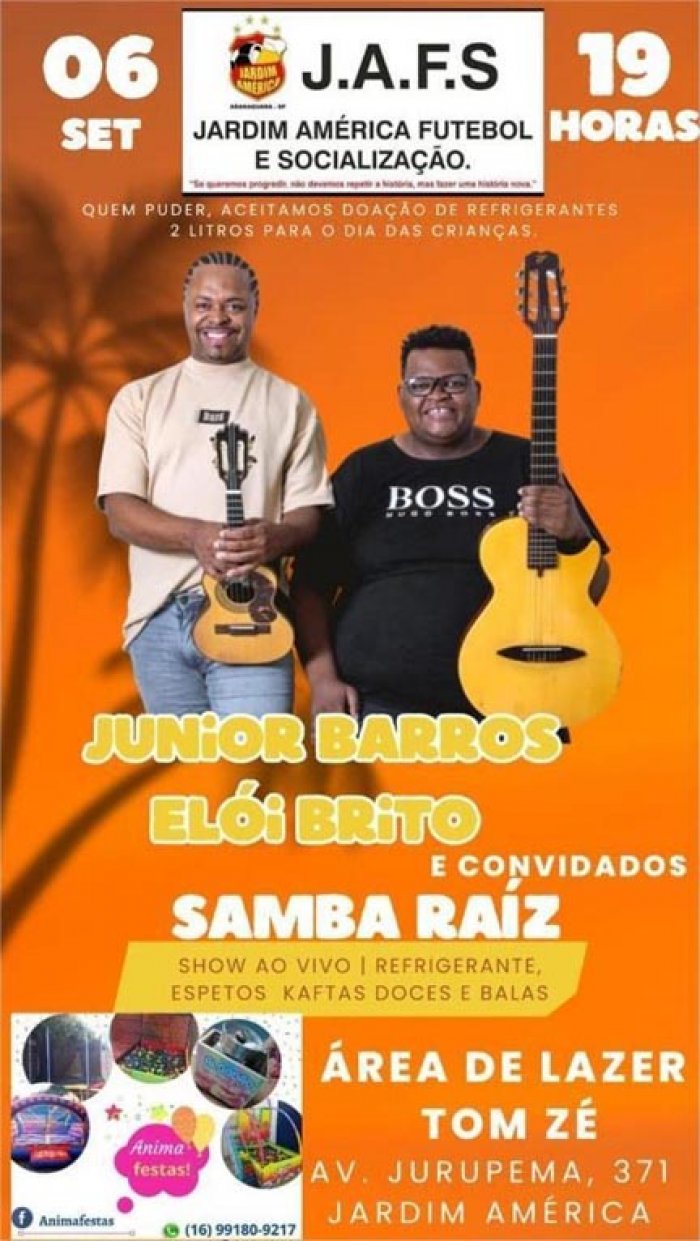 Junior Barros e Eloi Brito – duas referências da música popular e instrumental de Araraquara e região - comandam um samba animado com seus convidados e repertório formado por samba raiz, pagode dos anos 90 e outros diversos sambas conhecidos.