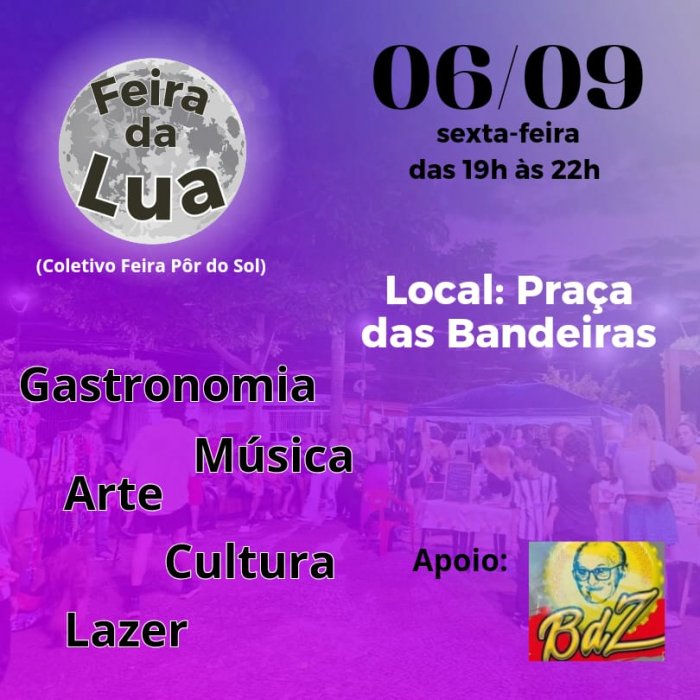 A sexta-feira começa com a Feira da Lua às 18h, na Praça das Bandeiras, em uma realização do Coletivo Pôr do Sol. Gastronomia, arte, lazer, música e cultura se concentram no evento, que contará também com a roda de conversa: “Produção da websérie ‘Território’ e o trabalho com Cultura Popular dentro das periferias” – atividade que faz parte da Semana do Maracatu.