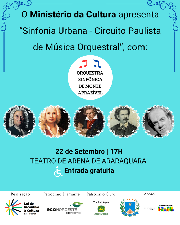 17h: “Sinfonia Urbana – Circuito Paulista de Música Orquestral” apresenta: Orquestra Sinfônica de Monte Aprazível