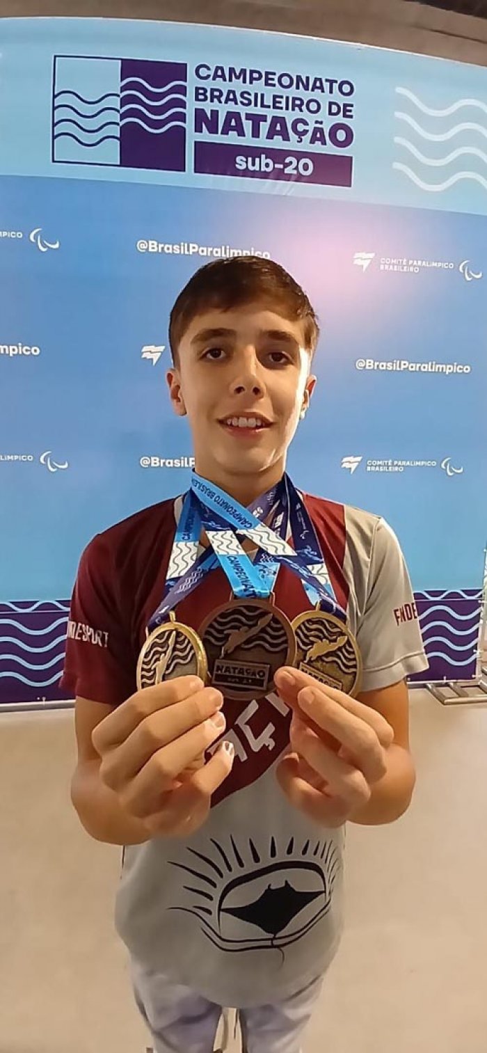 O nadador da equipe da Fundesport, João Gallo Mendonça, que representa a equipe de natação PCD de Araraquara, brilhou em São Paulo, na semana passada, no Campeonato Brasileiro Sub-20, disputado no Centro de Treinamento Parallímpico Brasileiro.