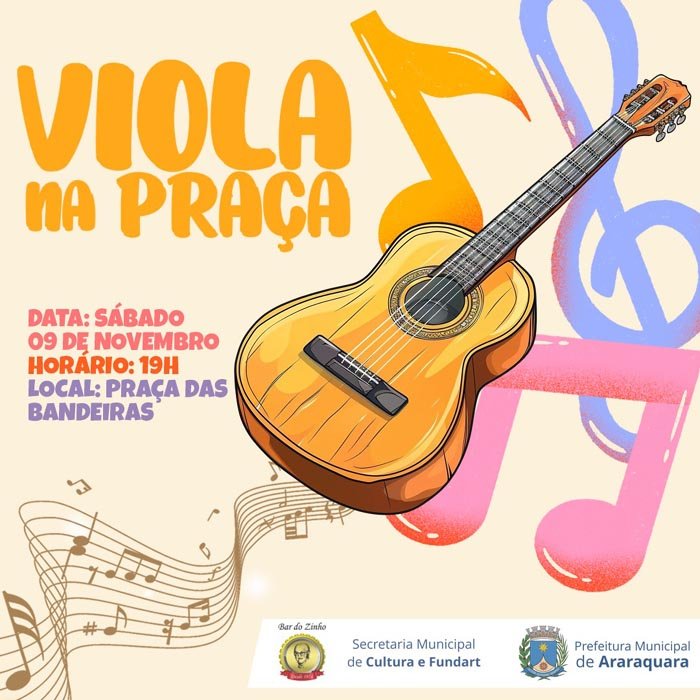 Neste sábado (09) a moda de viola é atração na Praça das Bandeiras com o programa “Viola na Praça”, realizado pela Secretaria Municipal da Cultura e Fundart com acesso gratuito. A programação tem início às 19 horas.