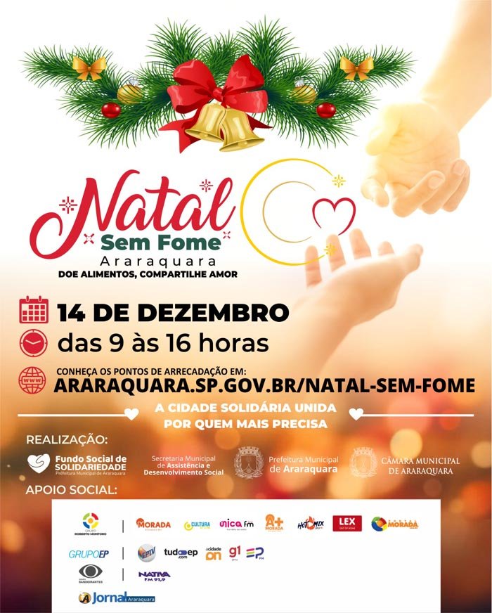 Os alimentos doados pela população para a campanha Natal Sem Fome de 2024 serão recebidos e distribuídos pelas 47 entidades parceiras e seus voluntários, beneficiando centenas de famílias no município. Segundo Jacqueline Pereira Barbosa, Secretária Municipal de Assistência e Desenvolvimento Social, é a oportunidade de "proporcionar um Natal mais digno e solidário para as famílias de Araraquara que necessitam".