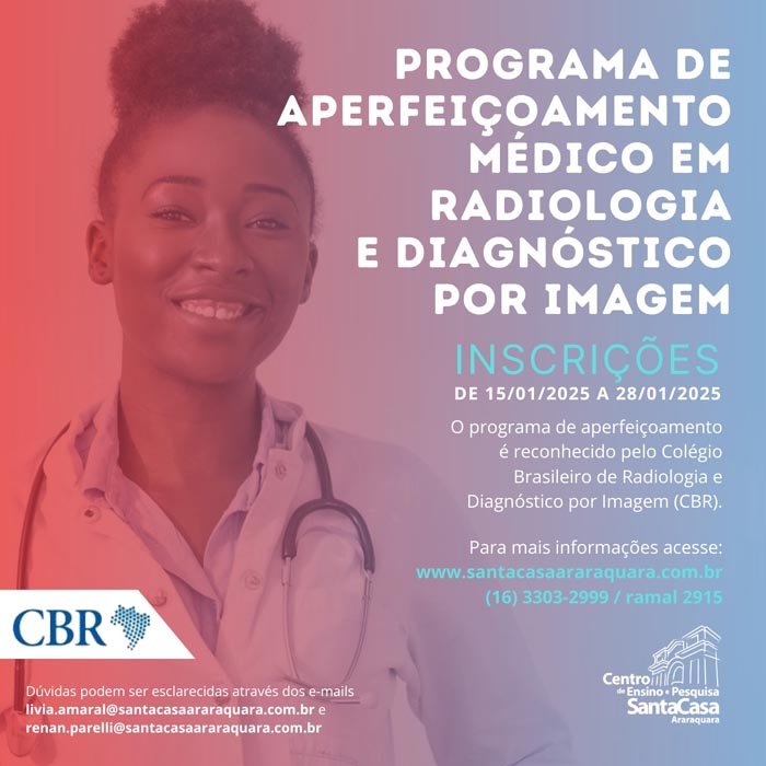 A Santa Casa de Misericórdia de Araraquara, através do hospital de ensino, está com as inscrições abertas para o Programa de Aperfeiçoamento Médico em Radiologia e Diagnóstico por Imagem.