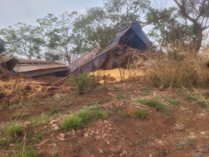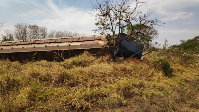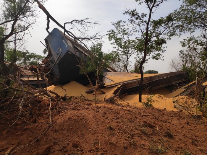 A composição estava carregada de milho que ficou espalhado pela linha.