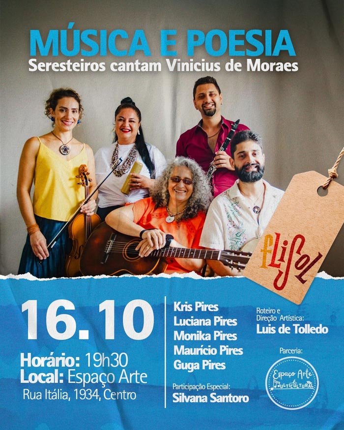 O grupo Seresteiros com a família Pires - Kris, Luciana, Monika, Maurício e Guga – se apresenta sob direção de Luís de Toledo (Lilico). A noite de emoção e beleza, que celebra a força da música e da poesia na obra do poeta, dramaturgo, jornalista, diplomata, cantor e compositor brasileiro Vinicius de Moraes, o "Poetinha", contará com a participação especial da atriz, diretora teatral e Profª de Literatura, Silvana Santoro.