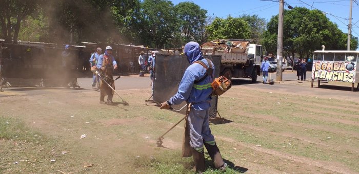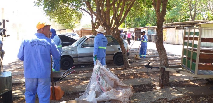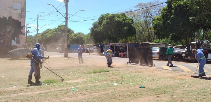 Foram realizados serviços de limpeza de áreas públicas, poda de árvores, nivelamento de vias, retirada de entulhos e construções irregulares, além de orientações aos moradores sobre descarte correto de resíduos, cuidado com os animais e preservação dos espaços comuns.