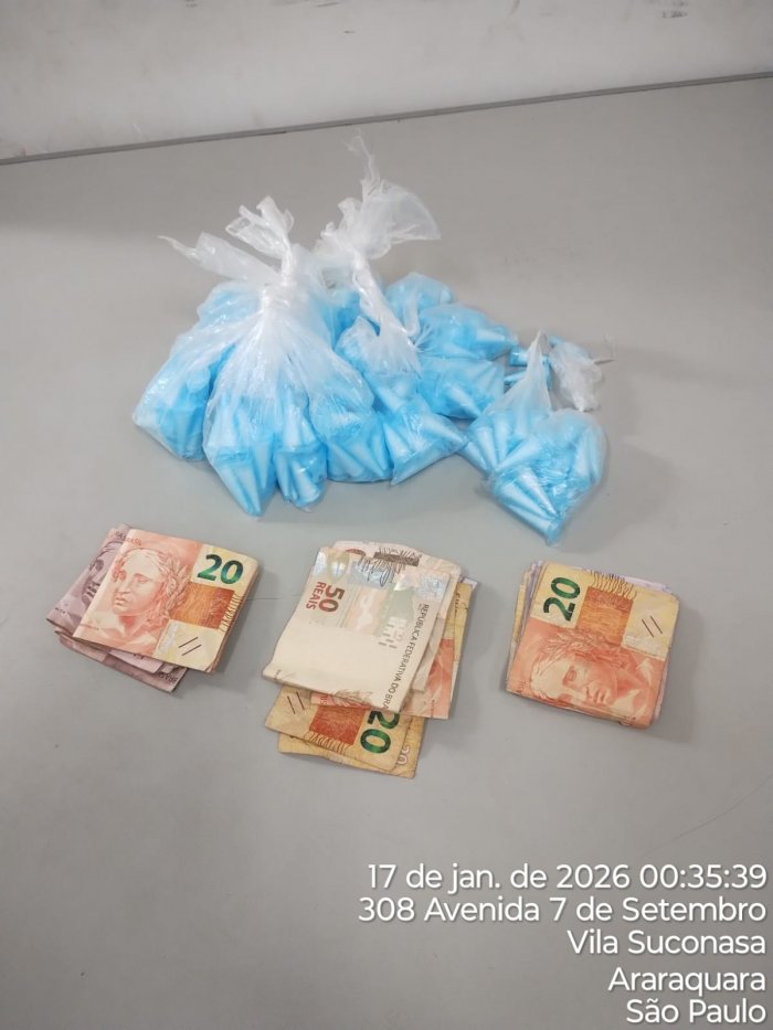 Ao todo, foram apreendidos 235 microtubos de cocaína e R$ 600,00 em espécie. Questionado, o adolescente negou a propriedade das drogas, alegando estar no local apenas para comprar maconha, versão contestada pelos policiais que visualizaram o descarte dos entorpecentes.