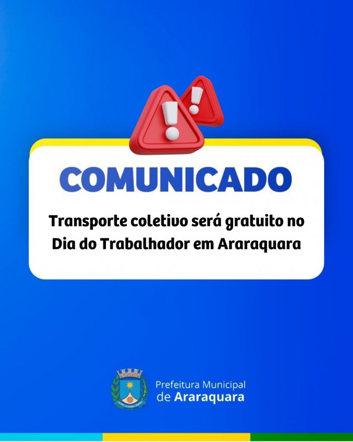Os moradores de Araraquara terão um incentivo a mais para aproveitar o feriado nacional nesta semana. Em comemoração ao Dia do Trabalhador, a Prefeitura Municipal anunciou que o transporte coletivo urbano da cidade operará de forma totalmente gratuita na próxima sexta-feira, 1º de maio.