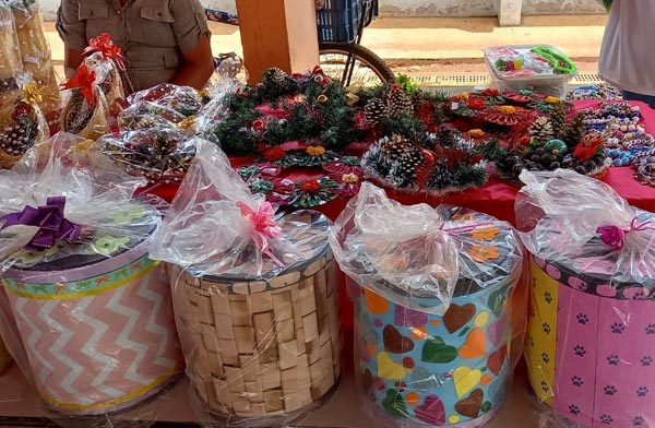 Diversas sugestões de presentes natalinos produzidos pelas alunas do espaço estão disponíveis com valores que variam entre R$ 5 e R$ 30