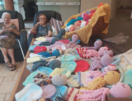 Idosos da Casa de Repouso Tranquillità já produziram mais de 7.800 gorrinhos para bebês nascidos na Gota de Leite
