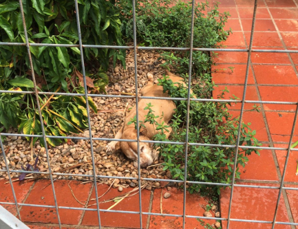 Um cachorro foi encontrado morto no jardim da residência e uma cadela foi encontrada viva em espaço inadequado