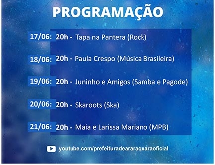 O programa ‘Cultura em Rede – Lives’ começa às 20 horas, com exibição pelo Canal da Prefeitura de Araraquara no Youtube