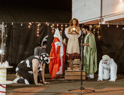 Apresentações cênicas mambembes são realizadas em diversos locais da cidade e levam a mensagem natalina da paz e esperança