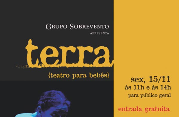 Espetáculo “Terra” será encenado gratuitamente no CER Leonor Mendes de Barros, no Parque Infantil, às 11h e 14h
